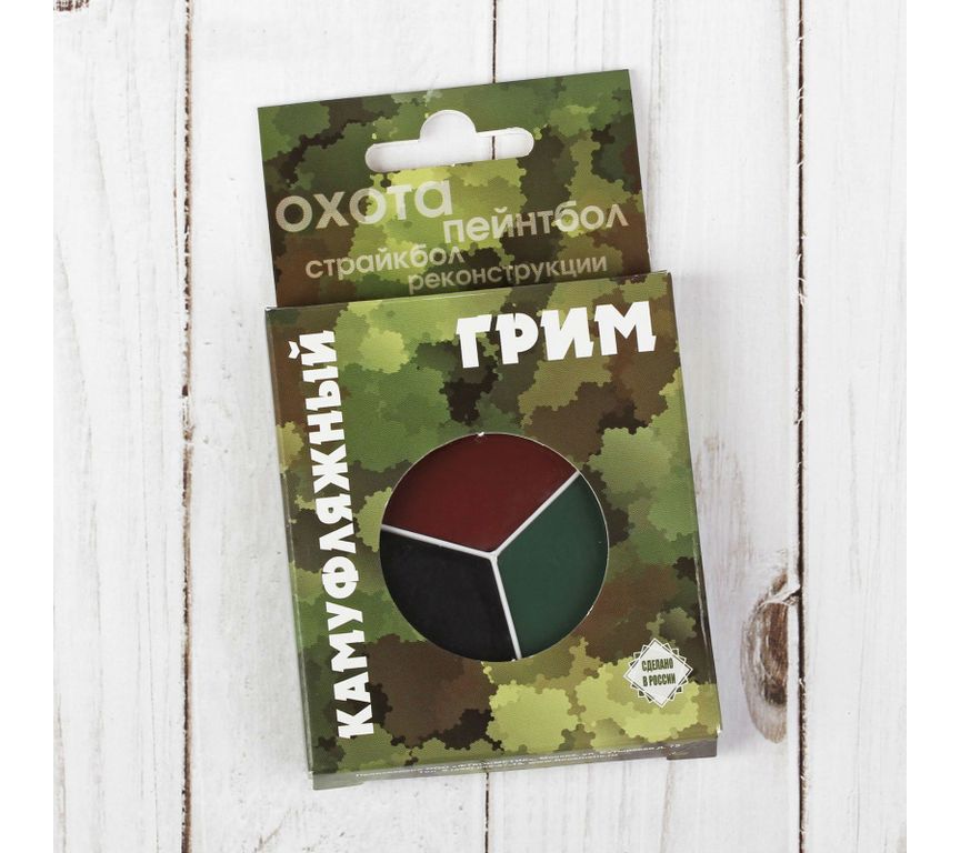 Предназначен для использования охотниками, при играх в страйкбол, пейнтбол, проведения праздников. Благодаря сбалансированному составу и тщательно подобранным компонентам, грим для лица не препятствует дыханию кожи и не забивает поры, легко наносится и прочно удерживается. Влагостойкий.