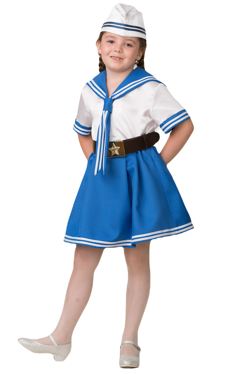 Костюм задорной и славной Морячки обязательно понравится маленьким любительницам приключений. Красивый и яркий образ девочки-морячки очарует и удивит всех во время таких праздников как день ВМФ, 23 февраля, 9 мая. Наряд будет актуален для выступлений и спектаклей на военную тематику.